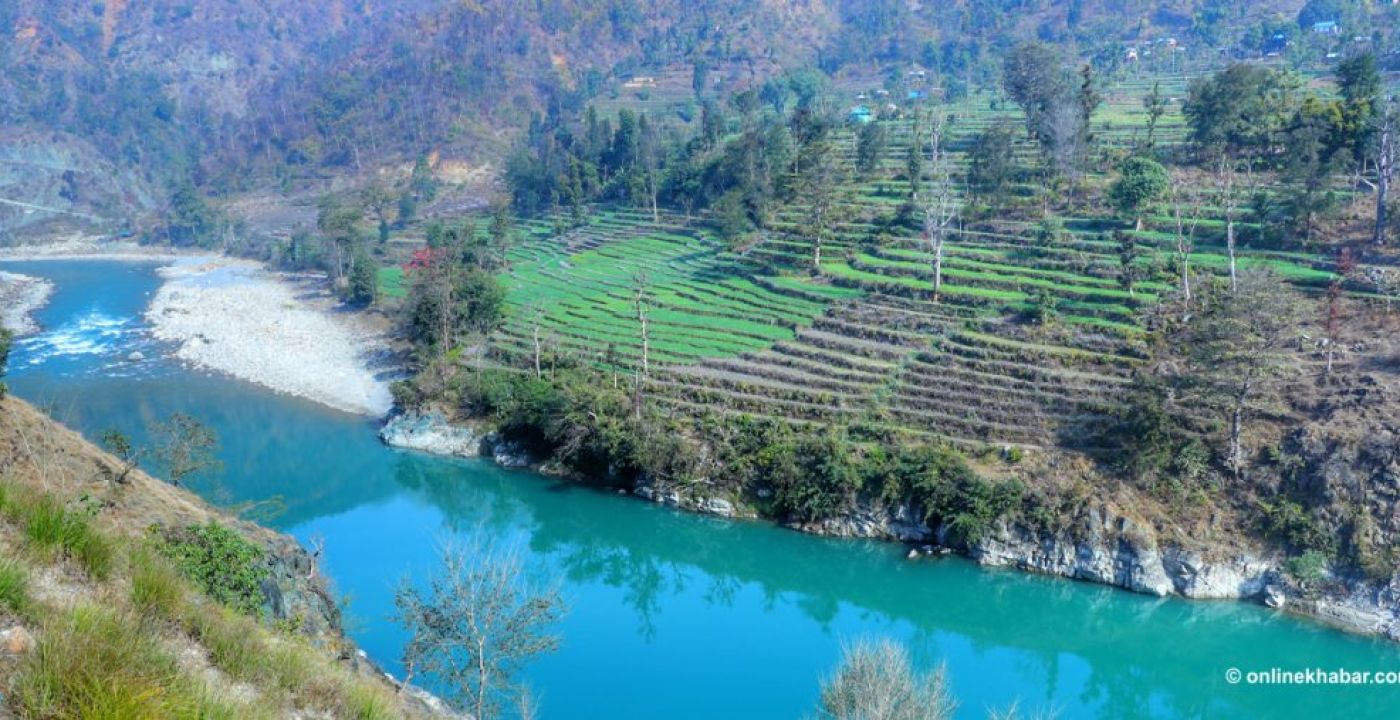 नदी किनारैमा बनेको सडकले दुर्गम पहाडी बस्तीलाई जोड्दै विकासको संकेत दिन्छ भने उब्जाउ जमिनले स्थानीय किसानको दैनिकी झल्काउँछ । भेरीको पानीले सिंचित यी खेतहरूमा मौसमी बालीहरू हरियाली भएर फक्रिएका छन् ।