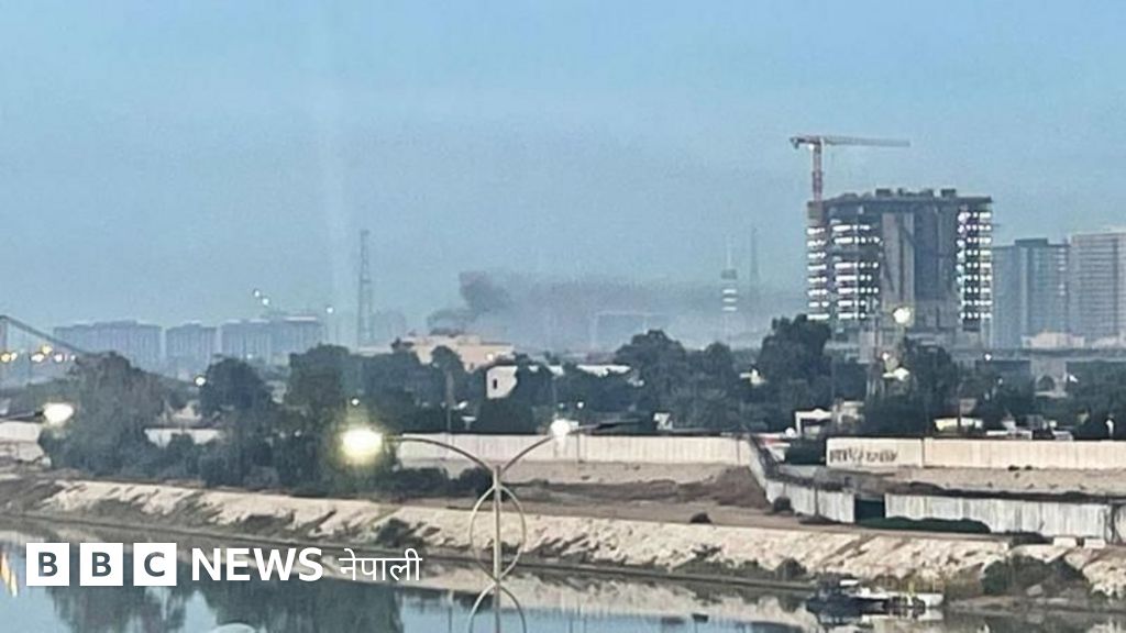 तस्बिरको क्याप्शन, बग्दादमा भवनहरूबाट धुवाँ निस्किँदै गरेको देखिन्छ