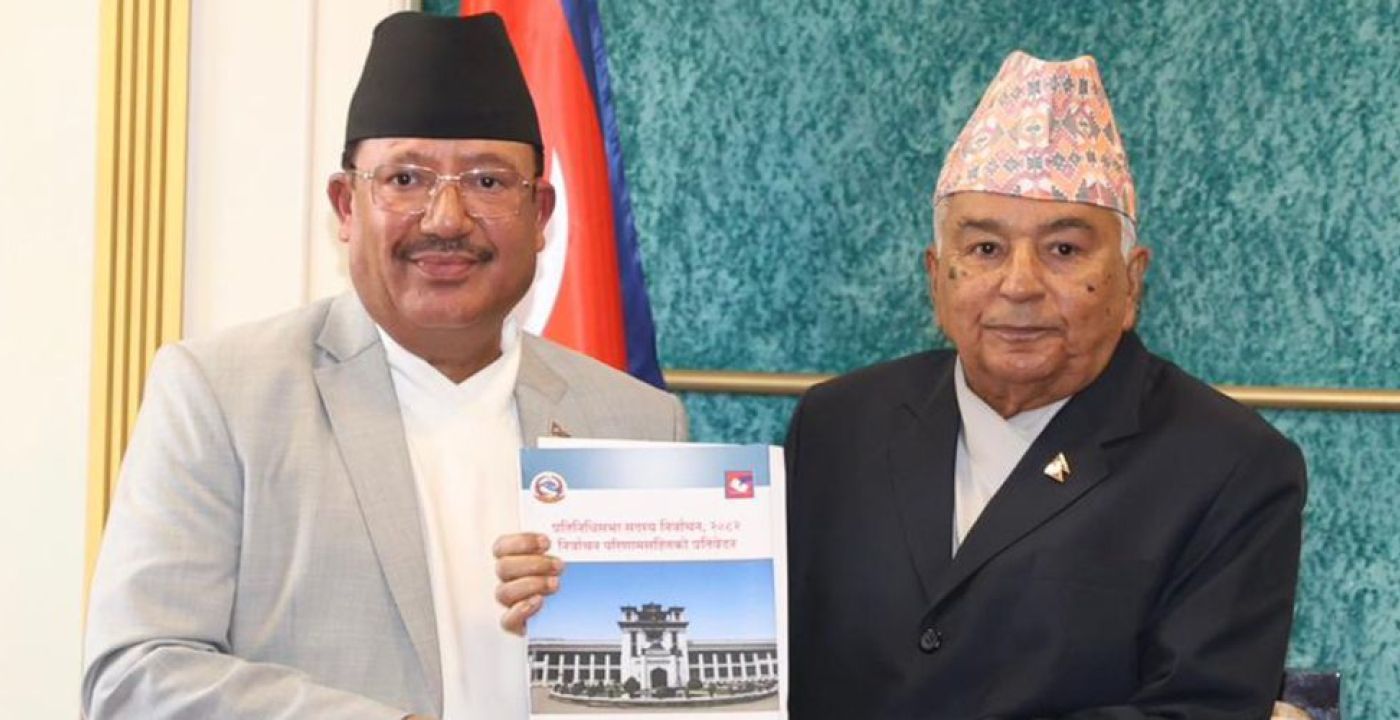 राष्ट्रपति भवन शीतलनिवासमा बिहीबार निर्वाचन आयोगका कार्यवाहक प्रमुख आयुक्त रामप्रसाद भण्डारीले प्रतिवेदन पेश गर्नुभयो।