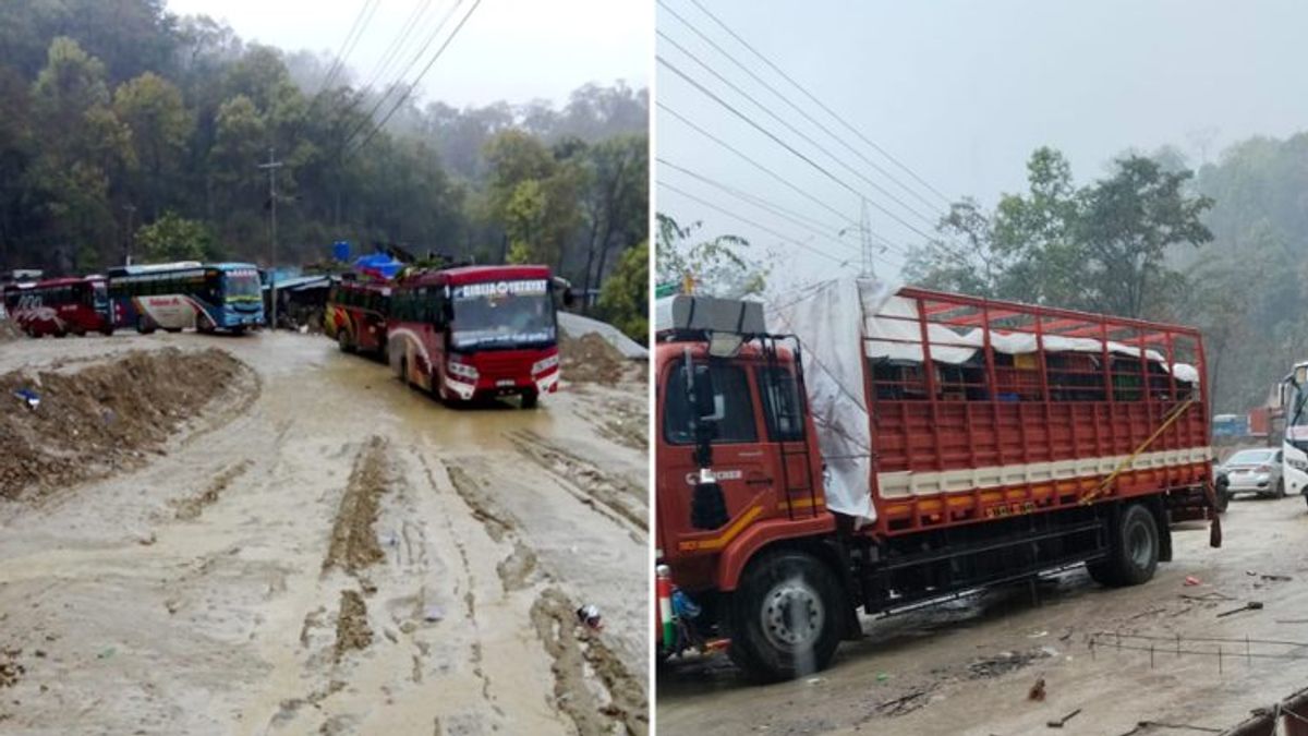 भारी वर्षाका कारण विनयी त्रिवेणी गाउँपालिका २ दाउन्ने बजारस्थित ६४ मोडमा सडक मर्मत भइरहेको बेला सडक हिलो र चिप्लो भएपछि राजमार्ग अवरुद्ध भएको हो।
