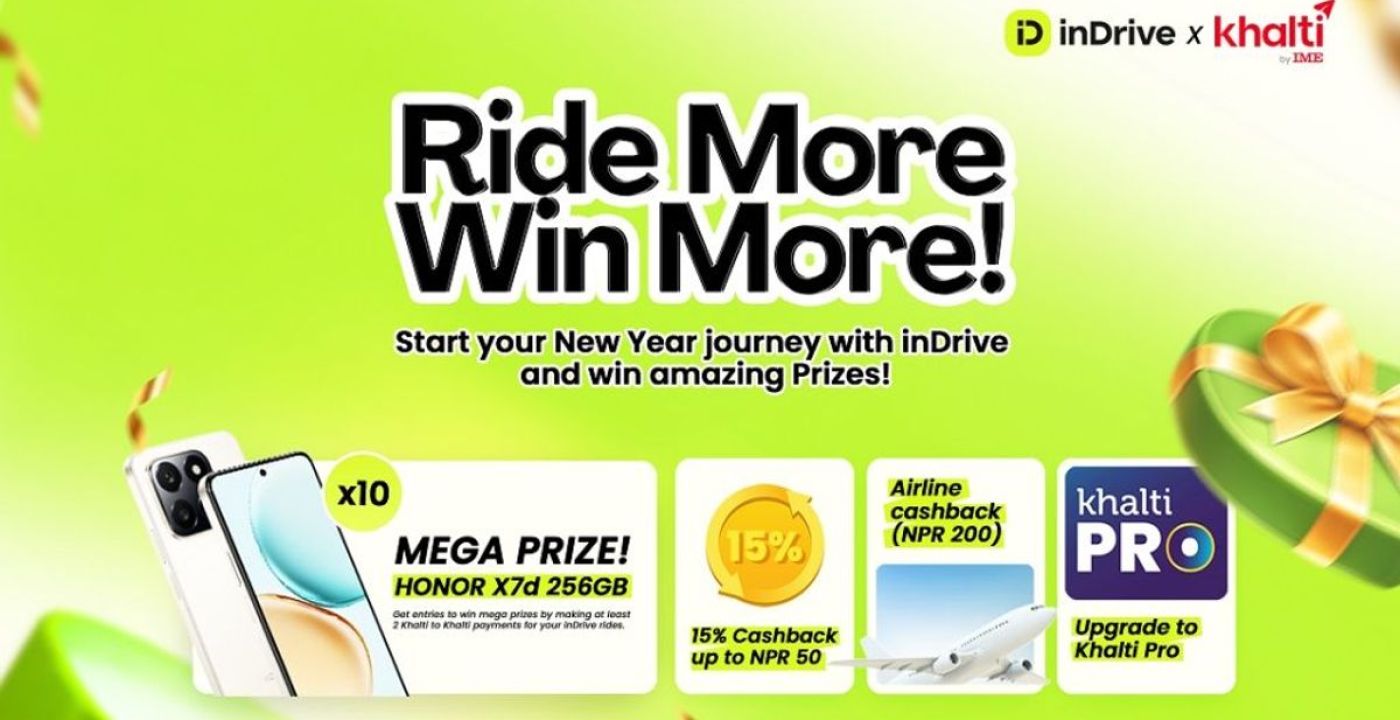 इनड्राइभले नेपाली नयाँ वर्ष २०८३ को अवसरमा ‘राइड मोर, विन मोर’ क्याम्पेन वैशाख १ देखि २१ सम्म सञ्चालन गर्ने घोषणा गरेको छ। यस क्याम्पेनमा प्रत्येक राइडको लागि १ लक्की ड्र टिकट प्रदान गरिनेछ र मेगा गिभअवेमा भाग लिन कम्तीमा २ कारोबार खल्ती एपमार्फत गर्नुपर्नेछ। प्रमुख पुरस्कारमा १० वटा अनर एक्स ७ डी स्मार्टफोनसहित प्रोमो कोडमार्फत क्यासब्याक र एयरलाइन प्रोमो कोड पनि समावेश गरिएको छ।
