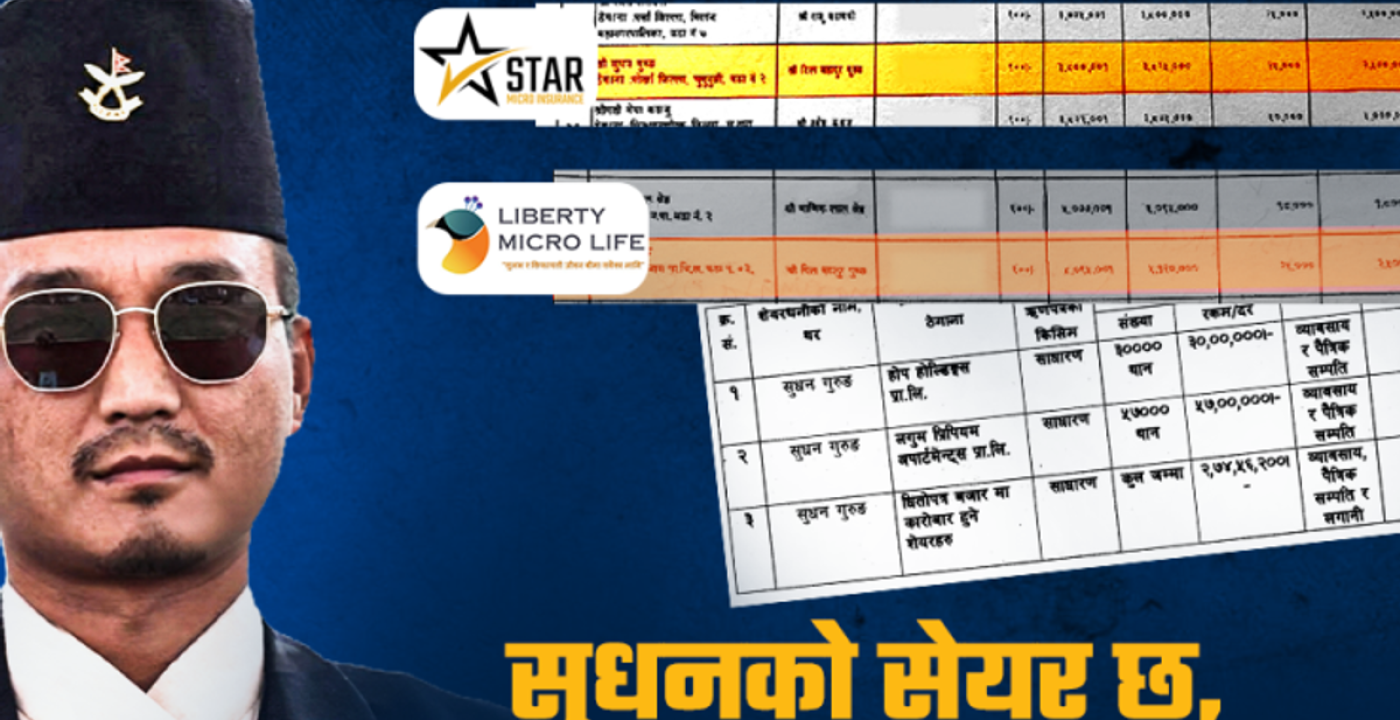 गृहमन्त्री सुधन गुरुङले सार्वजनिक गरेका सम्पत्तिमा सयौँ रोपनी जग्गा र ८९ तोला सुन देखाइए पनि स्रोत पारदर्शी छैन। उनले दुई माइक्रोइन्स्योरेन्स कम्पनीमा ५० लाख रुपैयाँ बराबरको संस्थापक सेयर उल्लेख नगरेका छन्, जसले कानुनी प्रश्न उठाएको छ। उनले सेयर किन्ने स्रोत ऋण भएको दाबी गरेका छन्, तर ती सेयर आईपीओ नभएपछि धितोपत्र बजारमा कारोबार हुँदैन।
