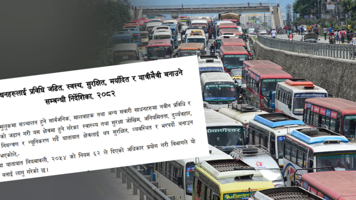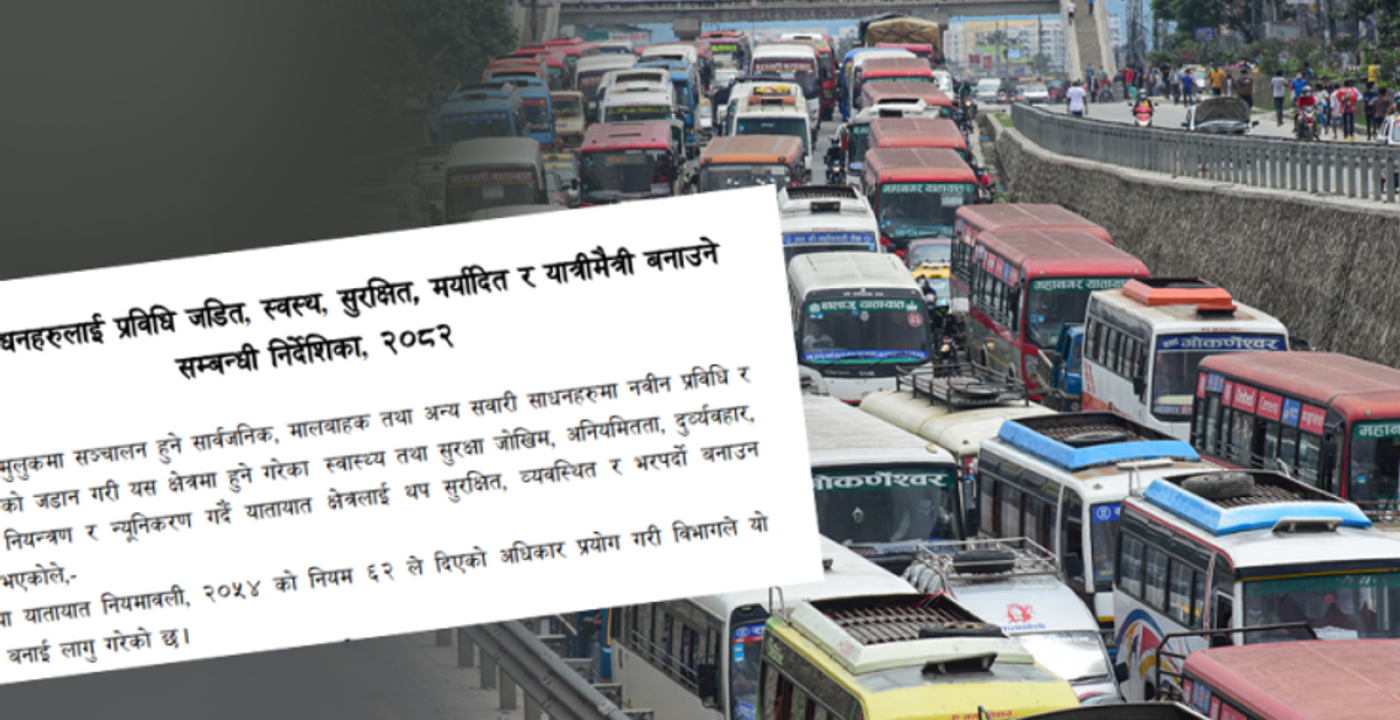 सरकारले सार्वजनिक सवारीसाधनमा अनिवार्य रूपमा जीपीएस र दुई वा बढी सीसीटीभी क्यामरा जडान गर्न नयाँ निर्देशिका तयार पारेको छ। सार्वजनिक सवारीमा अनलाइन टिकट खरिद र भुक्तानीका लागि मोबाइल एप तथा डिजिटल प्रणाली अनिवार्य गरिने भएको छ। अग्नि नियन्त्रक, प्राथमिक उपचार किट र आपतकालीन सहायता बटम जडान गर्नुपर्ने निर्देशिका पनि जारी गरिने तयारी छ। ८ वैशाख, काठमाडौं। अबदेखि सार्वजनिक सवारीसाधनमा ‘जीपीएस’ (कुनै पनि वस्तु वा व्यक्तिको अवस्थिति पत्ता लगाउने) अनिवार्य जडान गर्नुपर्ने भएको छ। भौतिक, पूर्वाधार तथा यातायात मन्त्रालयले सवारीसाधनलाई प्रविधिजडित, स्वस्थ, सुरक्षित, मर्यादित र यात्रीमैत्री बनाउने सम्बन्धी निर्देशिका २०८२ को मस्यौदा तयार पारेको छ। सोही निर्देशिका मार्फत सरकारले सवारीसाधनमा अनिवार्य जीपीएस नियम ल्याउन लागेको हो। यसका लागि यातायात व्यवस्था विभागले प्राविधिक सहयोग उपलब्ध गराउने प्रस्ताव गरेको छ।