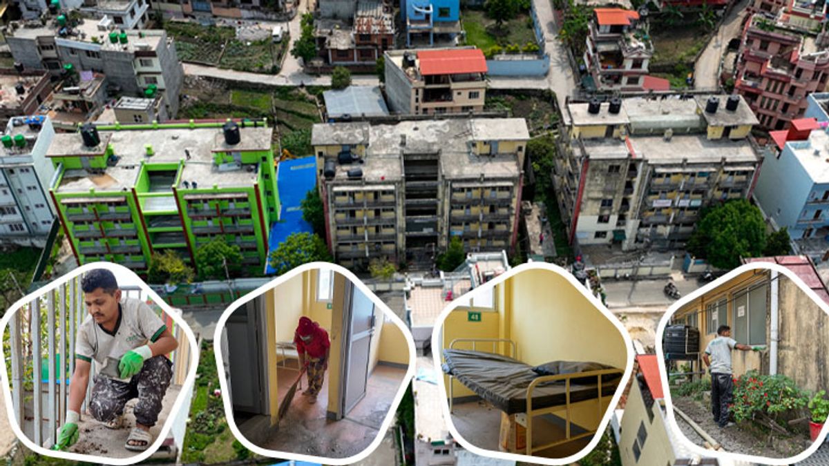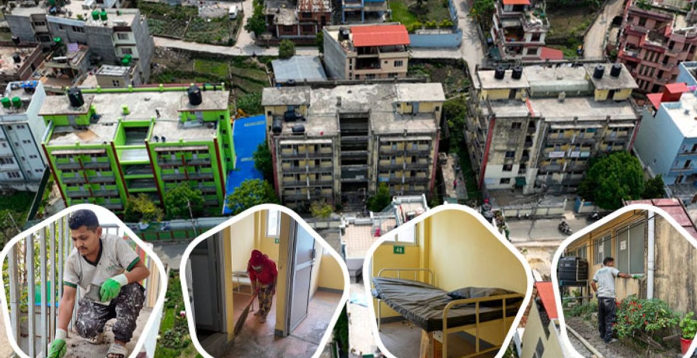 बिजुली नभएका कोठामा बत्ती जडान मर्मत जारी छ। एउटा परिवारको लागि साना साना तीन कोठासहित शौचालय हुनेगरी प्रत्येक तलामा छुट्टाछुट्टै बस्न मिल्नेगरी कोठा बनाइएको छ। हाल यो भवनमा पानीको आपूर्ति भने छैन। तत्कालीन समयमा सबै कोठामा राखिएका बेडमा सीमित मात्रामा प्रयोग गर्न मिल्नेछन्। केही शौचालय मर्मत गरेर मात्रै प्रयोग गर्न सकिने छन्।