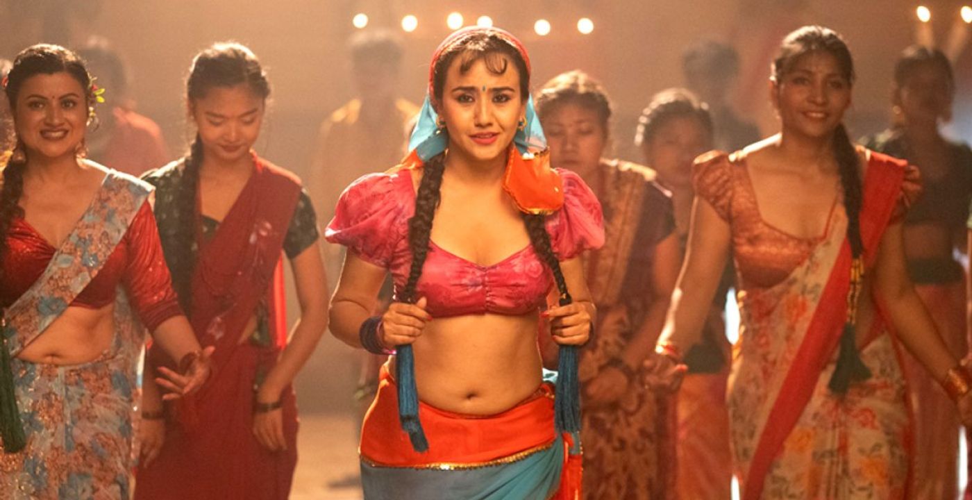 गीतमा कलाकारहरू स्वस्तिमा खड्का, रवीन्द्रसिंह बानियाँ, मुकुन्द श्रेष्ठ, जानकी कडायत लगायत फिचर्ड छन्। गीतको नृत्य निर्देशन प्रदीप लामाले गरेका हुन्। गीतले नारी सुन्दरताको छविलाई प्रस्तुत गरेको छ। अहिले यो गीत टिकटक, रिल्स, युट्युब शट्स लगायतका प्लेटफर्महरूमा लोकप्रिय हुँदैछ। गीतको पूर्ण संस्करण सिनेमाघरमै हेर्न पाइने जनाइएको छ।