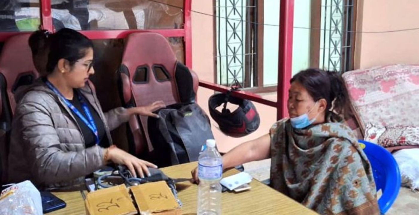 त्रिपुरेश्वरस्थित दशरथ रंगशालाको होल्डिङ सेन्टरमा ६० वर्षीया सम्झना राई काँपिरहेकी छन्। भिडको बीच भुईंमा टुसुक्क बसेकी सम्झनाको अनुहार फिक्का देखिन्छ। आँखा रसाएका छन्। उनी उच्च रक्तचापको पुरानो बिरामी हुन् र नियमित औषधि खानुपर्छ। ‘शरीर थरथर काँपिरहेको छ। औषधि खान पाएको छैन। पेट भोकै छ। हिजो रातभर सुत्न सकिनँ,’ उनले आँसु पुछ्दै परीक्षण गरिरहेका स्वास्थ्यकर्मीसँग भनिन्।