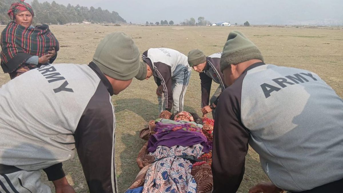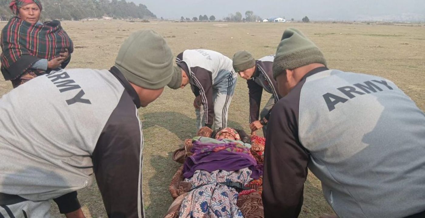 १४ वैशाख, काठमाडौं । प्रसूतिको पीडाबाट पीडित एक महिलालाई नेपाल सेनाले उद्धार गरेको छ। ढोरपाटन शिकार आरक्षमा सुरक्षाका लागि खटिएको दुर्गाभञ्जन गुल्मबाट परिचालित टोलीले उक्त उद्धार कार्य गरेको हो। ढोरपाटन-८ स्थित देवीथानका महिलालाई उद्धार गरी सेनाले उनलाई उपचारको लागि ढोरपाटनस्थित सामुदायिक स्वास्थ्य चौकीमा पुर्याएको छ।