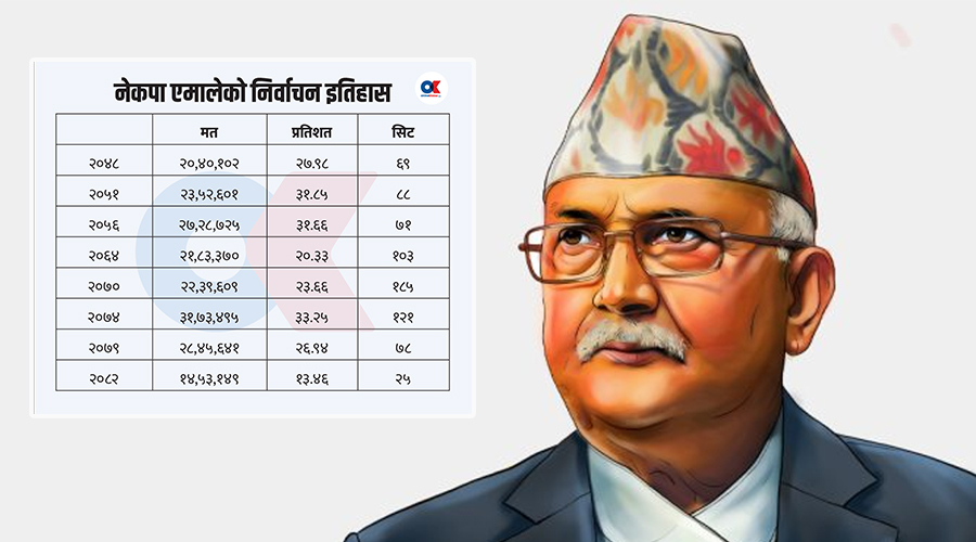 एमाले अध्यक्ष केपी शर्मा ओली झापा–५ बाट करिब ५० हजार मतान्तरले पराजित भएका छन् र पार्टी इतिहासकै कमजोर नतिजा आएको छ।
