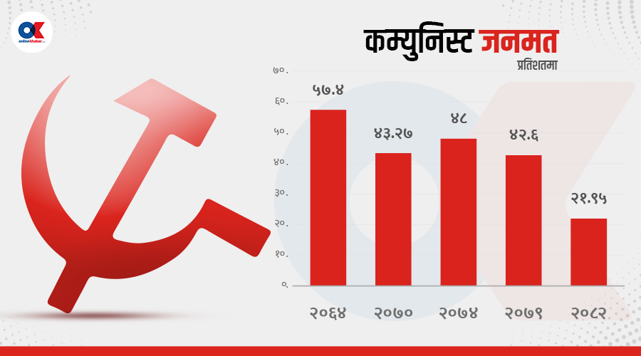 २०७४ मा संसदमा पाएको झन्डै दुई तिहाइ जनमत कम्युनिस्ट शक्तिले उपयोग गर्न सकेनन् । उल्टै आपसी विवादमा फसेर टुटफुट र विभाजन भए । २०७९ को निर्वाचनसम्म आइपुग्दा कम्युनिस्ट जनमत घटेर ४२.६० प्रतिशतमा झर्यो ।