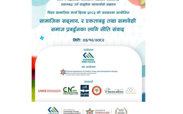 News Summary काठमाडौं मोडेल कलेज र त्रिभुवन विश्वविद्यालयको द्वन्द्व, शान्ति तथा विकास अध्ययन विभागले चैत ३ गते नीति संवाद कार्यक्रम आयोजना गर्ने भएको छ। कार्यक्रम विश्व सामाजिक कार्य दिवसको अवसरमा…